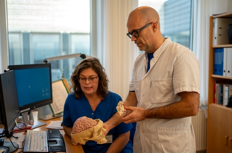Psykologer, ergoterapeuter og plejepersonale undersøger patientens kognitive og praktiske færdigheder i et tværfagligt samarbejde. Psykologerne bidrager med den neuropsykologiske undersøgelse af de kognitive evner, som ligger til grund for patientens praktiske kunnen.